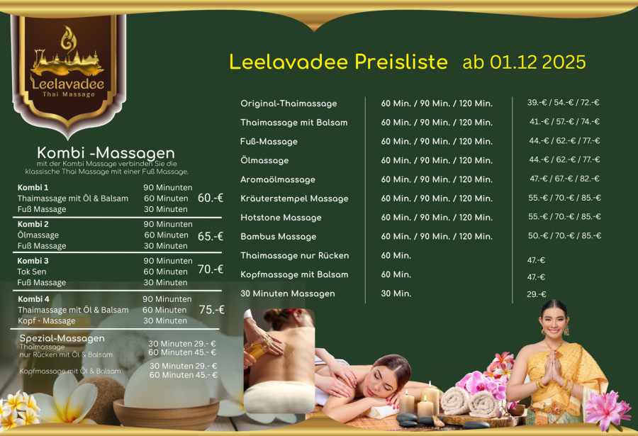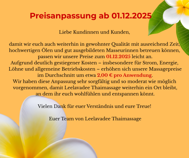 Leider kommt es immer wieder vor, dass der Begriff der Traditionellen Thaimassage missverstanden wird. In unserem Studio erhalten Sie nur Anwendungen auf Basis der Traditionellen Thailändischen