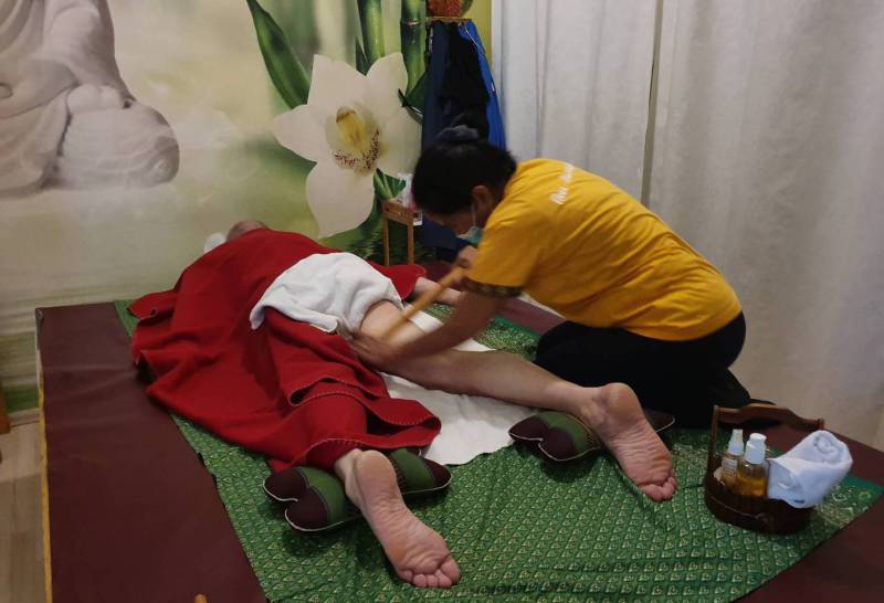 Eine besondere Massageform aus Nordthailand: Mit rhythmischen Klopfbewegungen werden Vibrationen entlang der Energiebahnen in den Körper geleitet.